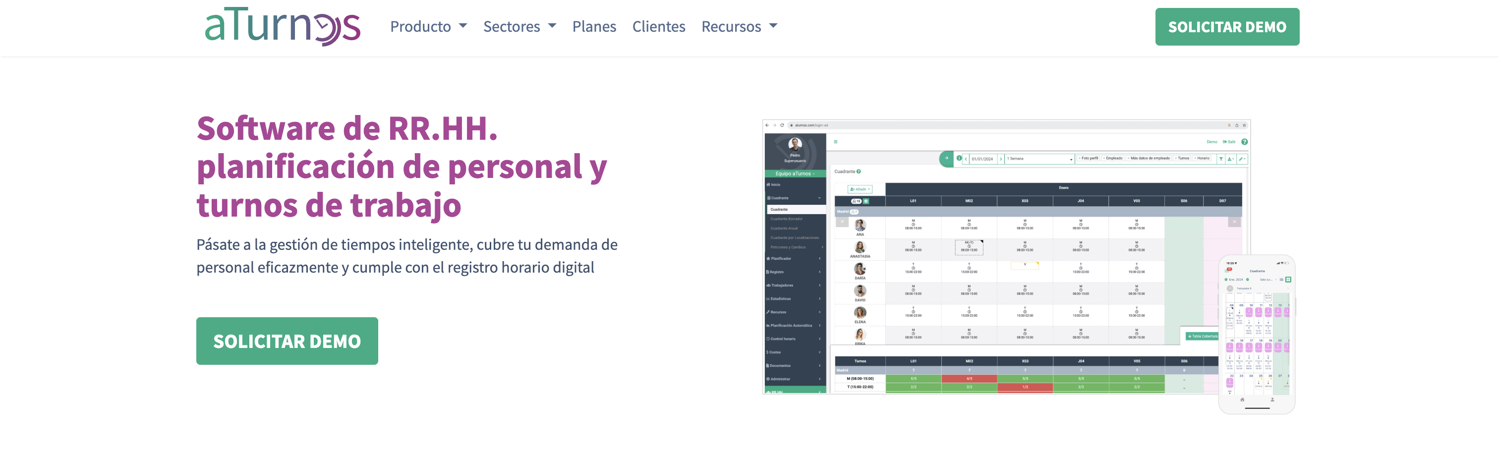 La plataforma incluye funciones básicas como la planificación de turnos, el control de ausencias y fichajes, así como la preparación de datos para nómina, accesible desde ordenador o aplicación móvil.