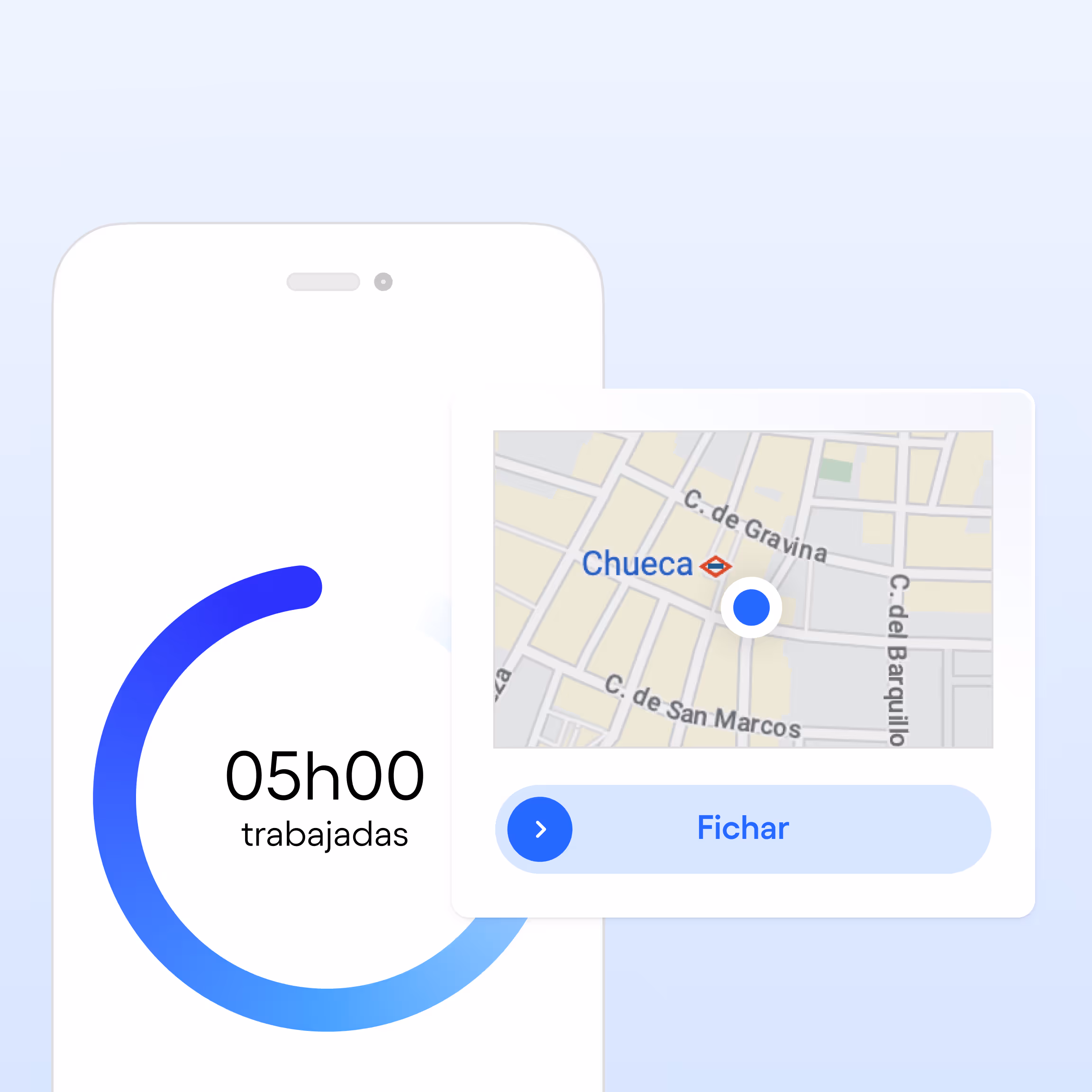 Supervisa el fichaje desde el móvil con geolocalización precisa.