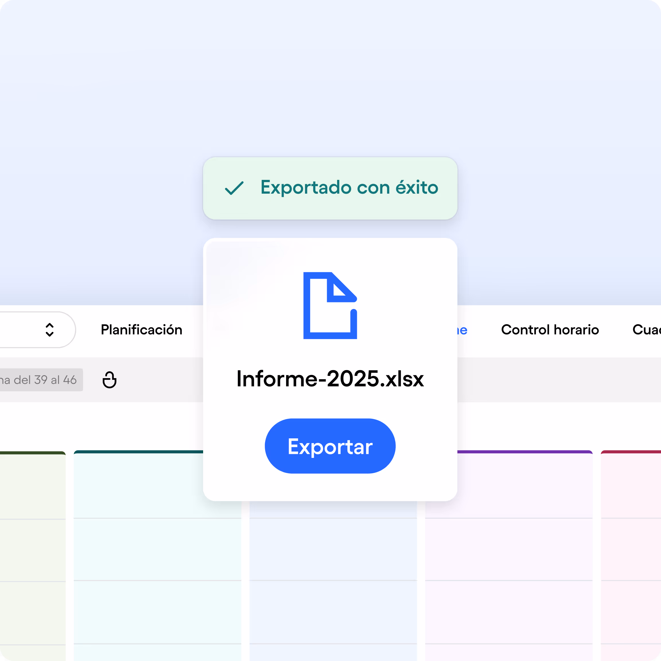 Skello exporta automáticamente los datos en el formato correcto, evitando errores y dobles entradas.