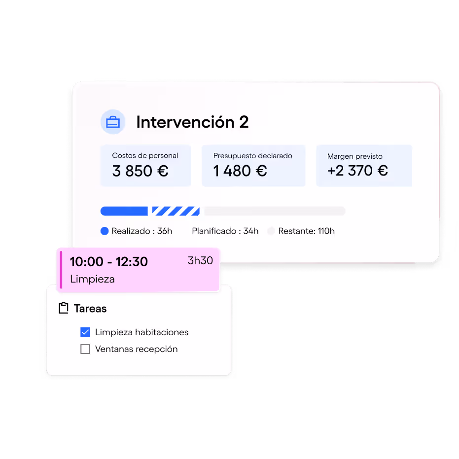 Disfruta de una trazabilidad completa, asegurando el cumplimiento de los plazos y presupuestos. Factura a tus clientes con precisión.
